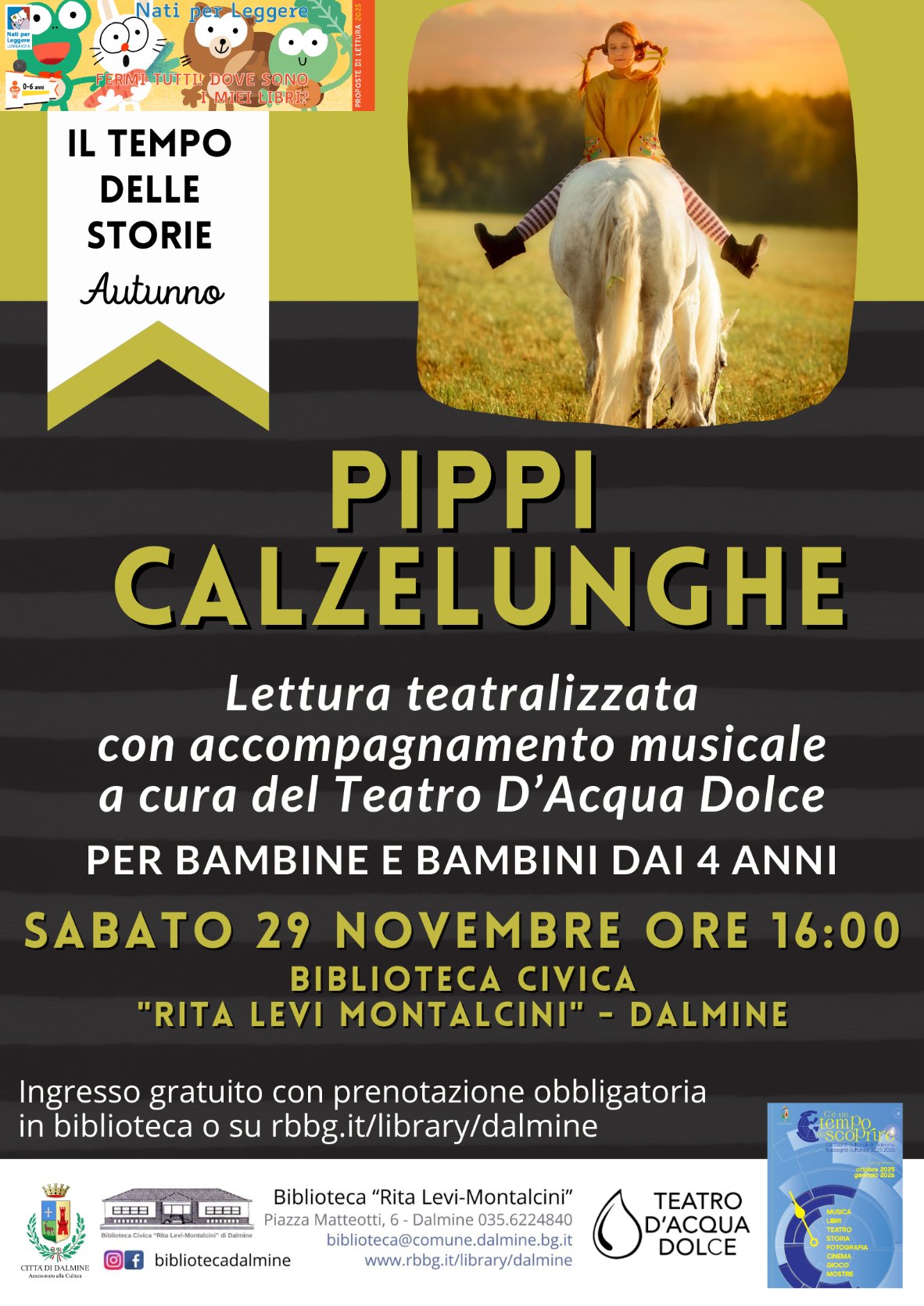Lettura teatralizzata con accompagnamento musicale a cura del Teatro d’acqua dolce – a partire dai 4 anni.